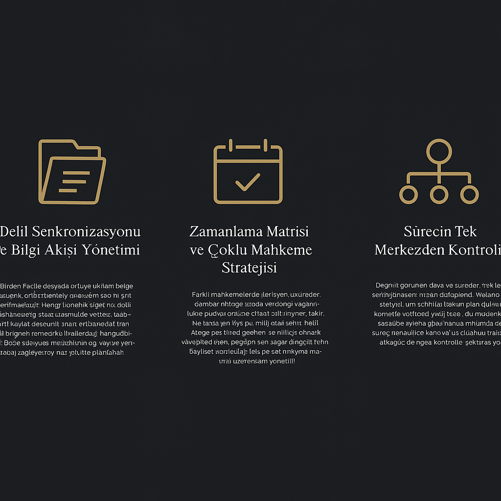 Farklı mahkemelerde ilerleyen süreçlerde, adımların hangi sırayla ve hangi yoğunlukta atılacağı kritik önem taşır. Her dava için ayrı bir ritim belirlenir; hızlı atağa geçilmesi gereken ve bilinçli olarak yavaşlatılması gereken aşamalar öngörülür. Böylece çoklu dosya trafiği tek bir zamanlama matrisi üzerinden yönetilir.